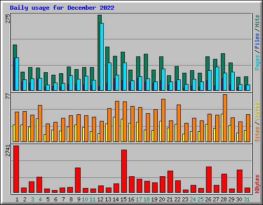 | Day | Hits | Files | Pages | Visits | Sites | KBytes | ||||||